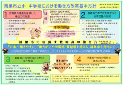 鴻巣市教育委員会より、「鴻巣市立小・中学校における働き方改革基本方針(令和5年度改訂)」が届きましたのでお知らせいたします。