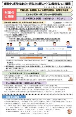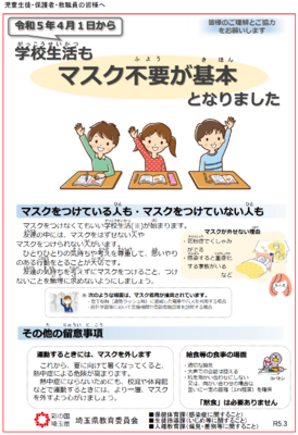 鴻巣市教育委員会より、「5類感染症への移行後の鴻巣市立小・中学校における新型コロナウイルス感染症対策について【概要版】」が届きましたのでお知らせいたします。