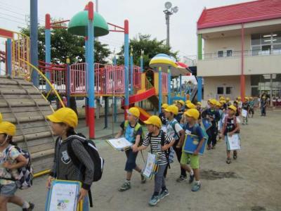避難訓練の後、保護者への引き渡しを行いました。