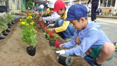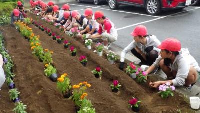 6月13日(火)に花いっぱい集会が行われました。小雨が降る中でしたが、みんなで協力して色とりどりの花々を校内いっぱいに植えることができました。また、たくさんのボランティアさんにもお手伝いいただきました。ありがとうございました。