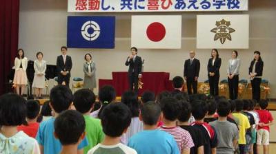3月末に箕田小を去られた先生方からのお話に、子ども達は真剣に聞き入っていました。