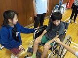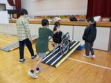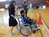今日は、総合的な学習の一環として車いすの体験を行いました。