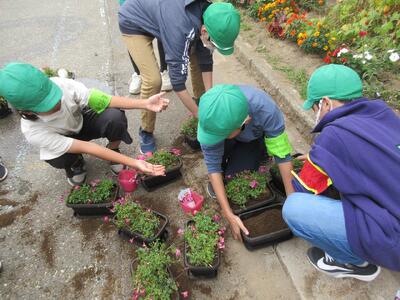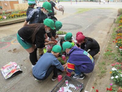 2025,10,24 花の鉢植え ~栽培委員会~ 14:38 今日の2時休みと昼休みに栽培委員会が「オキザリス」の花植えを行いました。 鉢に植え替え、全クラスと職員室、保健室、校長室、事務室、Withなどに届けました。 大事に育ててほしいです。