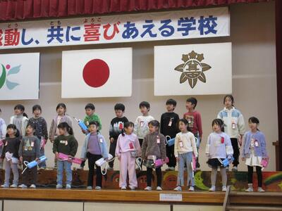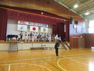 2025,12,05 校内音楽会 ~♪ 心を一つに ♬~ 16:52 今日は、2学期最後のイベント「校内音楽会」が行われました。 運動会が終わってからは、この音楽会に向けて、各クラス・学年が一団となって取り組んできました。 合わなかった曲も徐々にまとまり、みんなで気持ちを合わせて一つの曲を演奏する喜びを感じることができました。 この音楽会は、日ごろの音楽科の学習の成果を発表する場です。 その様子を多くの方にご覧いただけて、子ども達も嬉しかったことと思います。 たくさんの拍手をありがとうございました! <開会行事> <1年生>「こいぬのマーチ」 <2年生> <3年生> <4年生> <5年生> 1組 2組 <6年生>