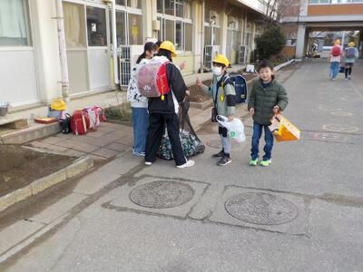 2026,03,02 通学班編成&一斉下校 03/02 来年度に向けて、新しい通学班を編成しました。 6年生は、新しい班では卒業まで後方で見守りをします。 班員がしっかり登校できるよう、サポートをしてくれることと思います。 いよいよ4・5年生が班長です。ルールを守り、班員のことを考えながら登校してください。 <通学班編成> <一斉下校> 一斉下校では、あいさつの仕方について、各班の班長が手本を見せました。 相手を見てあいさつをすることと会釈をすること。 まだ慣れていないので、難しいところもありますが、意識して毎日しているとできるようになります。 家の人と一緒に、普段から近所の方に挨拶をする経験を積んでおくといいかもしれません。