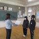 一斉下校では、あいさつの仕方について、各班の班長が手本を見せました。