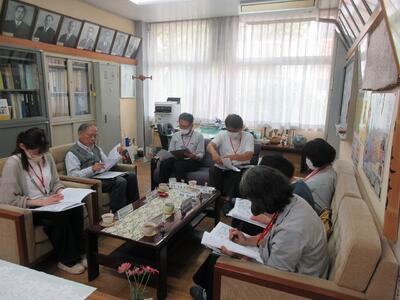 委員の皆様にお集まりいただき、今年度の本校の学校経営方針等について説明をさせていただいた後に承認をいただきました。