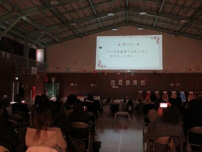 教科の発表を行ったり、合唱を披露したり、また、小さい頃の自分の写真や今まで教わった先生からのビデオメッセージを嬉しそうに見ていました。最後は、子ども達からお家の方へのプレゼントもありました。