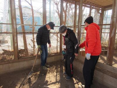 ウサギ用のハウスや暖をとるためのU字溝を譲り受けましたので、早速、箕田小のウサギ小屋で使わせていただくことになりました。運搬は、おやじの会の方々がやってくださいました。