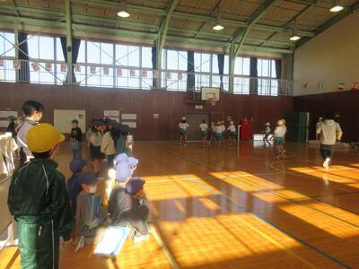 体育委員が「逃走中」を企画し、5年生と楽しく遊ぶことができました。