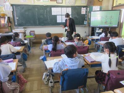 それぞれの教室では、音楽や体育、算数の授業が行われていました。
