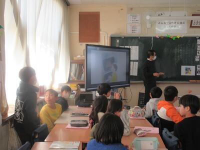 子どもたちは、思わず「渡辺の綱」の歌を口ずさむと、さくまさんも一緒に歌ってくれて、とても楽しいひとときを過ごすことができました。