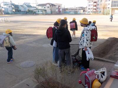 ・安全帽子は必ずかぶって帰りましょう。(途中で帽子をはずさない。)