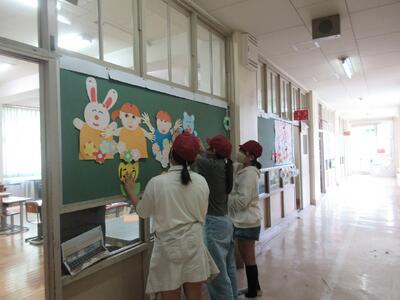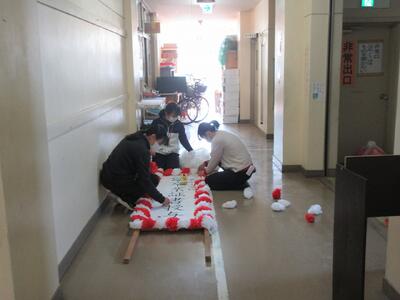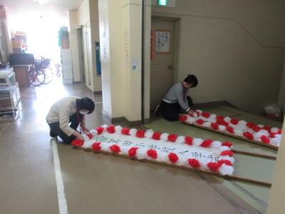 5時間目は、5年生児童が会場づくりを手伝い、放課後は、職員で仕上げを行いました。