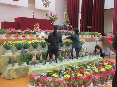 明日の卒業式に向けて、会場の準備を行いました。