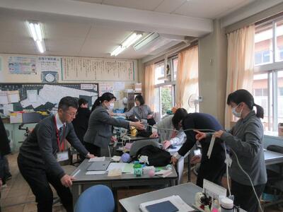 放課後は、職員で体育館の片づけを行いました。