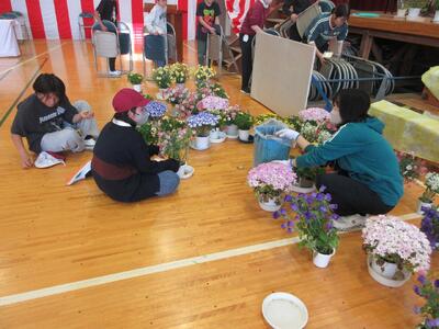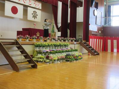 トイレや体育館、廊下などの掃除をしたり、いすならべや花を飾ったりと、忙しく動き回ってもらいました。