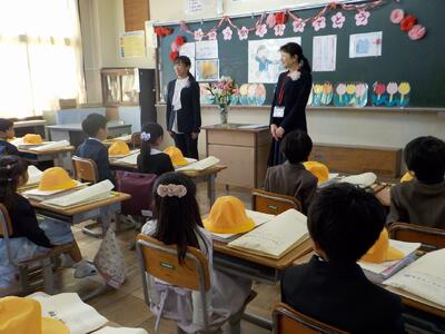 はじめに新しく箕田小へいらした先生の紹介があり、みんなであいさつをしました。
