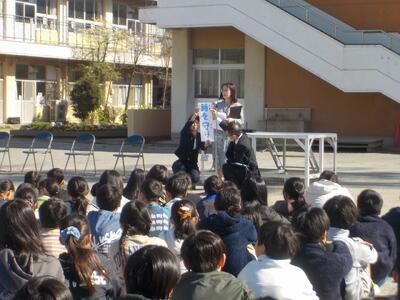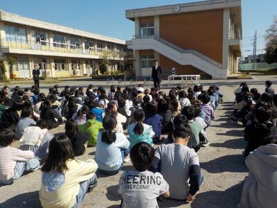 式辞では、一年間を振り返り、できたことやこれからも続けてほしいことを全校児童に伝えました。
